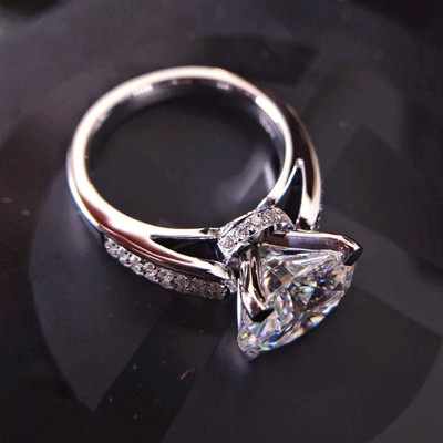 Ringha 6 Ct Pear Shape Lab Created Diamond Engagement Ring With Two Trillion Sidestones