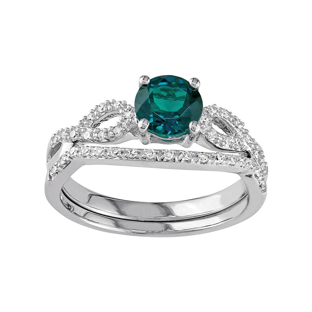 Stella Grace 10k White Gold Lab Created Emerald 1 6 Carat T W Diamond Engagement Ring Set