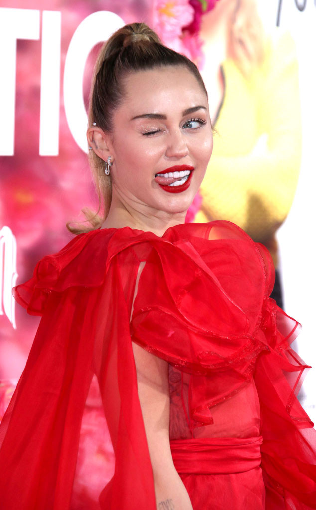 Miley Cyrus Dons Ruby Red Princess Gown At The Grammys Daily Mail