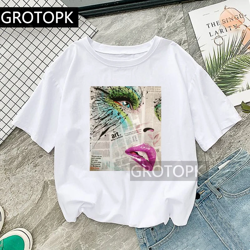 Us 3 58 Pop Art Newspaper Print Face Aesthetic T Shirts Summer Cotton T Shirt Harajuku Tops Graphic Tees Women Clothes 2019 Vogue Tshirt In T Shirts