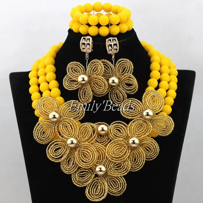 Us 67 35 26 Off Yellow Nigerian Wedding Indian Costume Bridal Jewelry Set African Artificial Coral Beads Necklace Set Gold Flowers Cj555 In Bridal