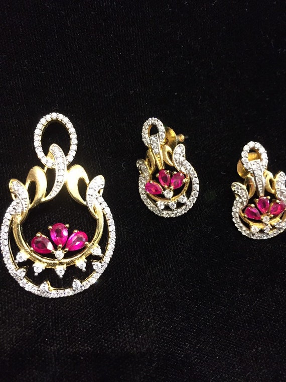 Artificial Red And White Pendant Earings Set Bridal Pendant Earings Set American Diamonds Pendant Earings Set