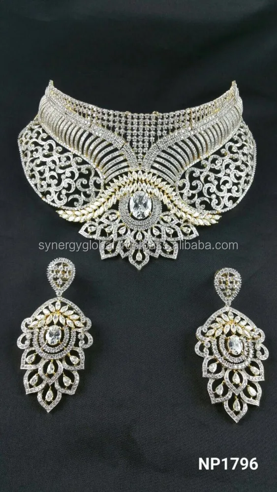American Diamond Cz Choker Style Bridal Necklace Set Bollywood Style Necklace Set African Style Jewelry Set Indian Imitation Buy Artificial