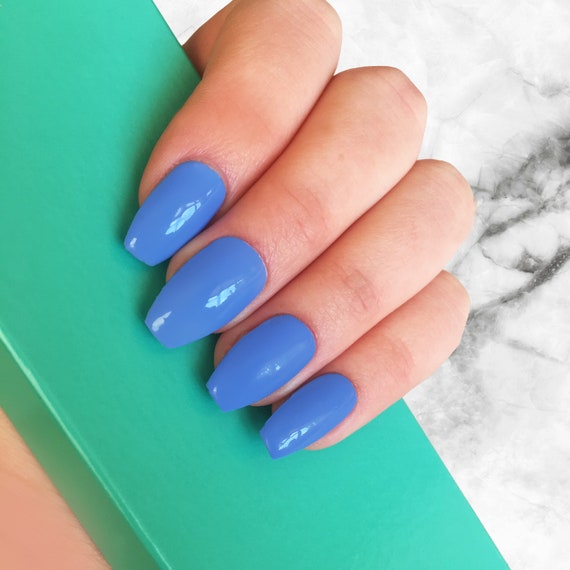 Light Blue Press On Nails Gel Solid Nails Glossy Nails Etsy