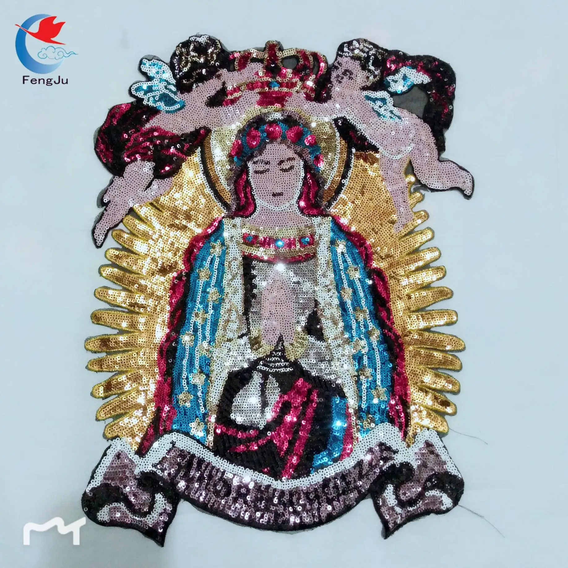 Us 5 27 5 Off Fengju Angel Of Jesus Beaded Sequin Madonna Patches Embroidery Fabric Patches Brand Fashion Large Applique Patches Sew On 1pc In