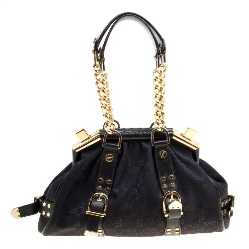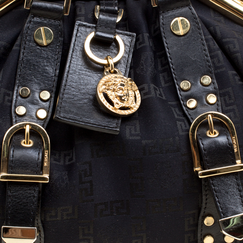 Versace Black Signature Fabric And Leather Madonna Boston Bag