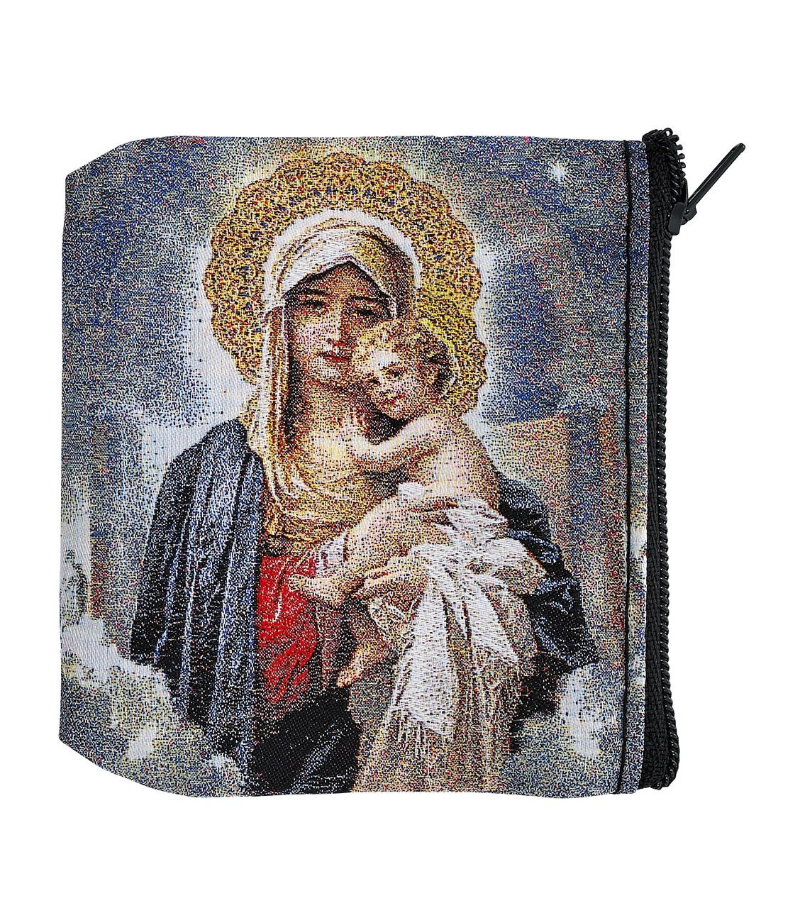 Rosary Beads Case Praying Madonna Fabric Zipper Closure 3 1 2 X 3
